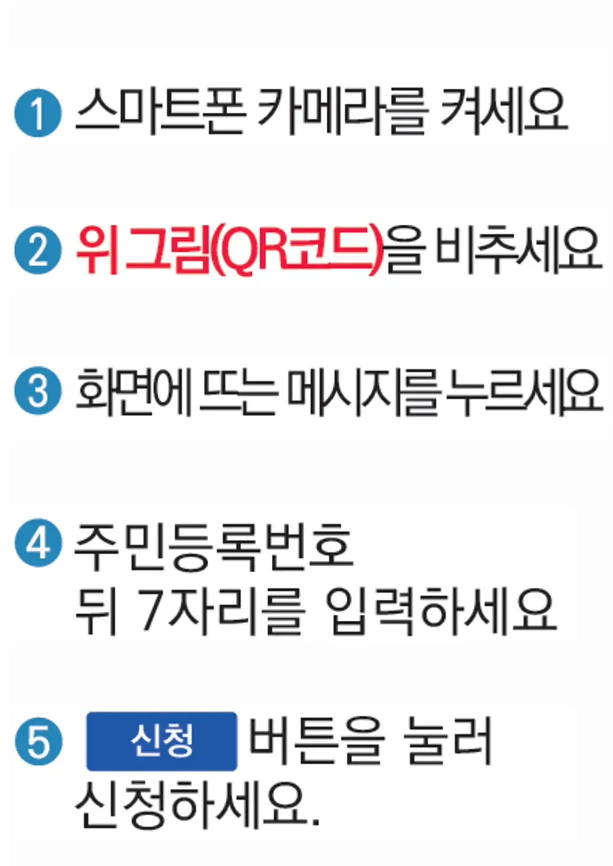 ✔ 별도로 로그인 할 필요 없이 주민등록번호 입력 후 신청이 가능합니다.